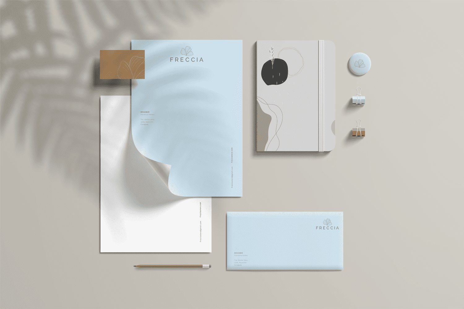 Logo design and visual extensions crafted for Freccia, a fashion brand based in Paraguay.