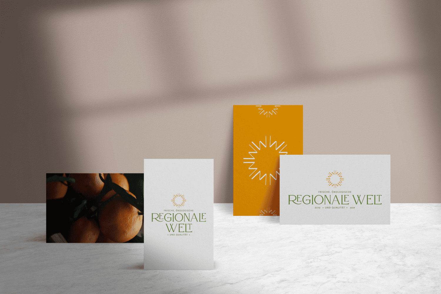 Brand design and visual extensions for Regionale Welt, a ecological food producer from Germany.