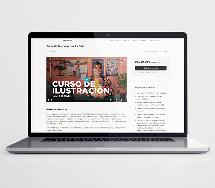 E-learning website we crafted for Lu Paul, an illustrator from Argentina that wanted to spread her knowledge.